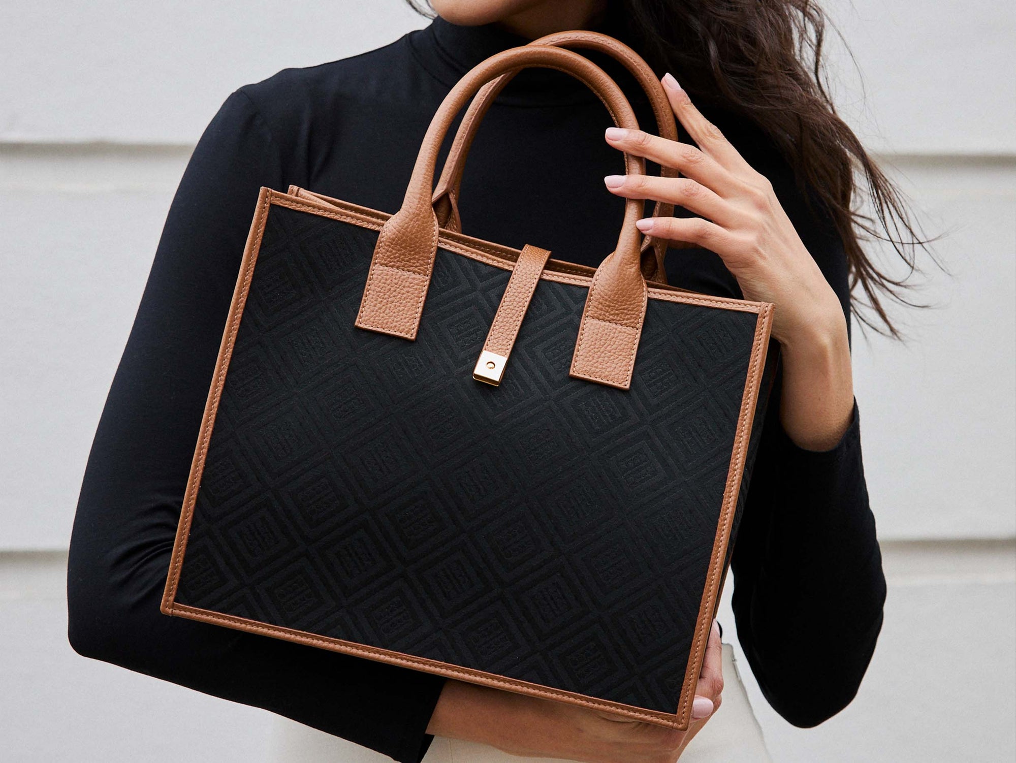 Paquita Bag in Logo Jacquard Print - Black/Tan