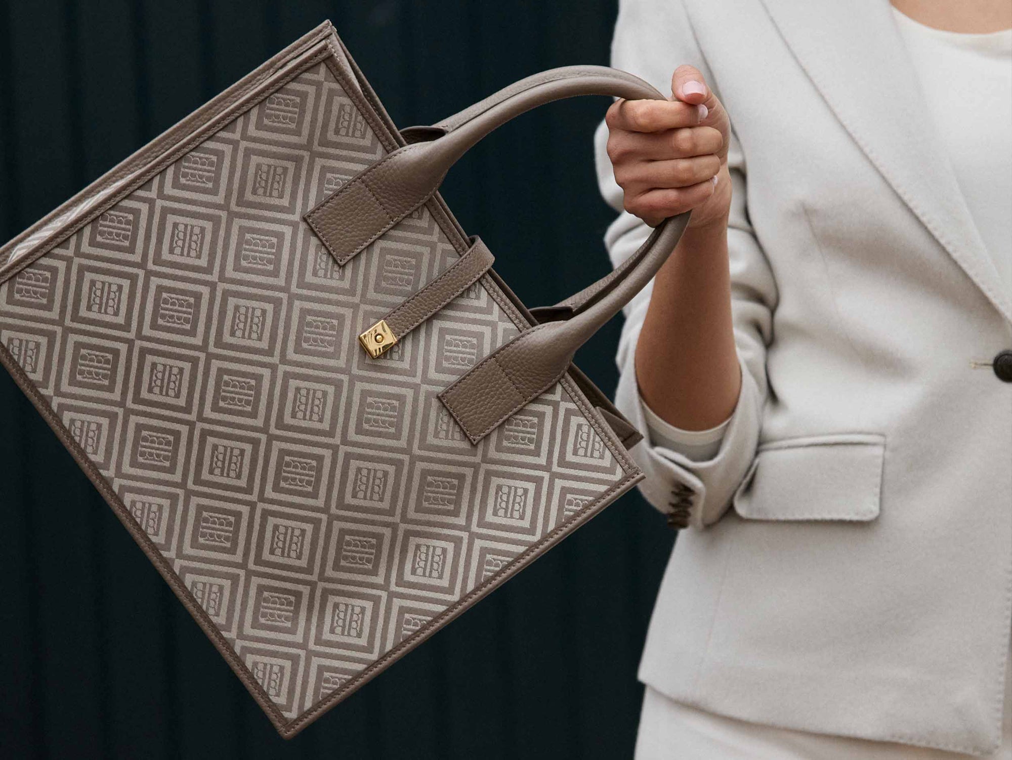 Clara Logo Jacquard Print Bag - Beige/Taupe