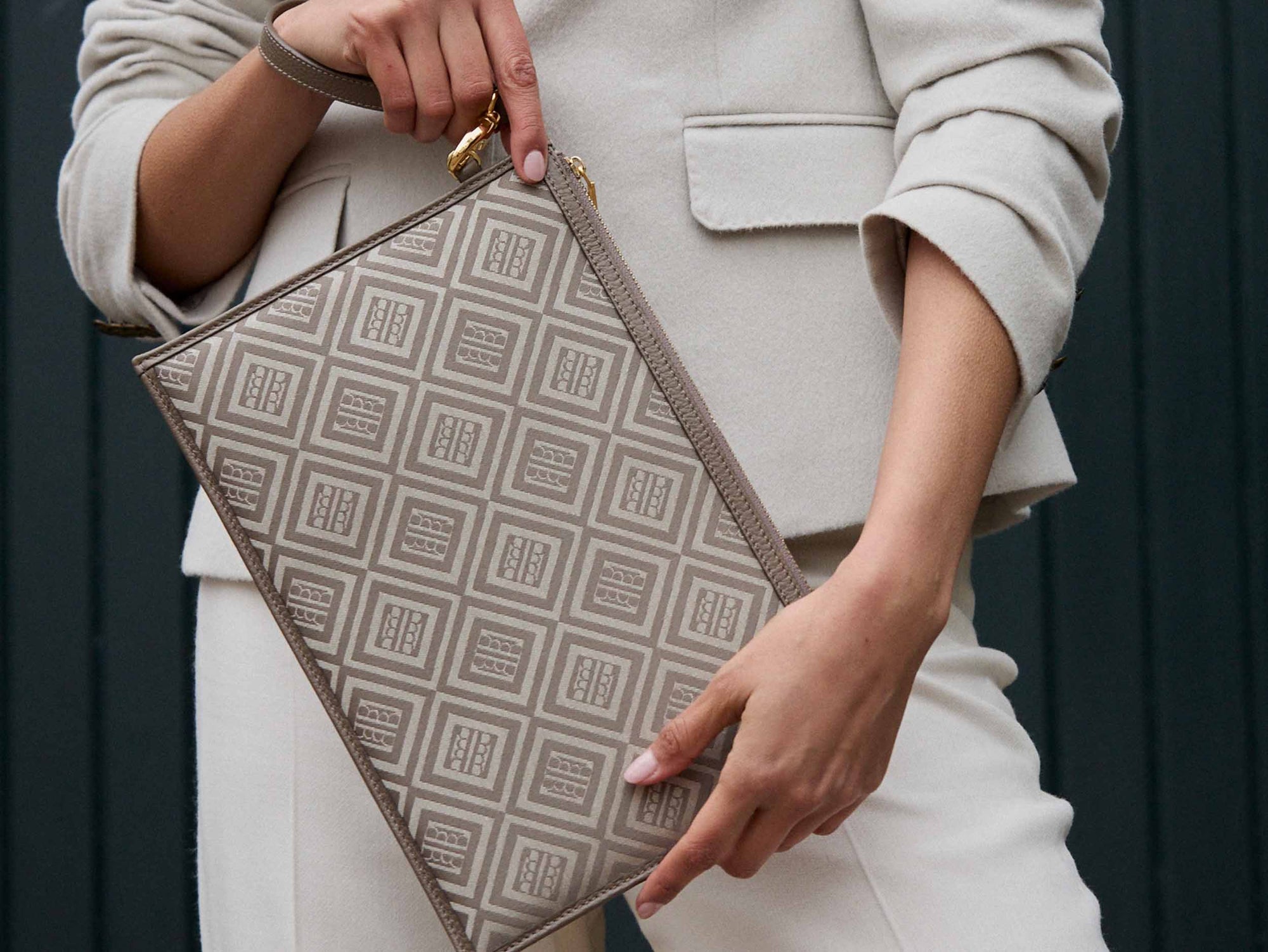 Large Pouch in Logo Jacquard Print - Beige/Taupe