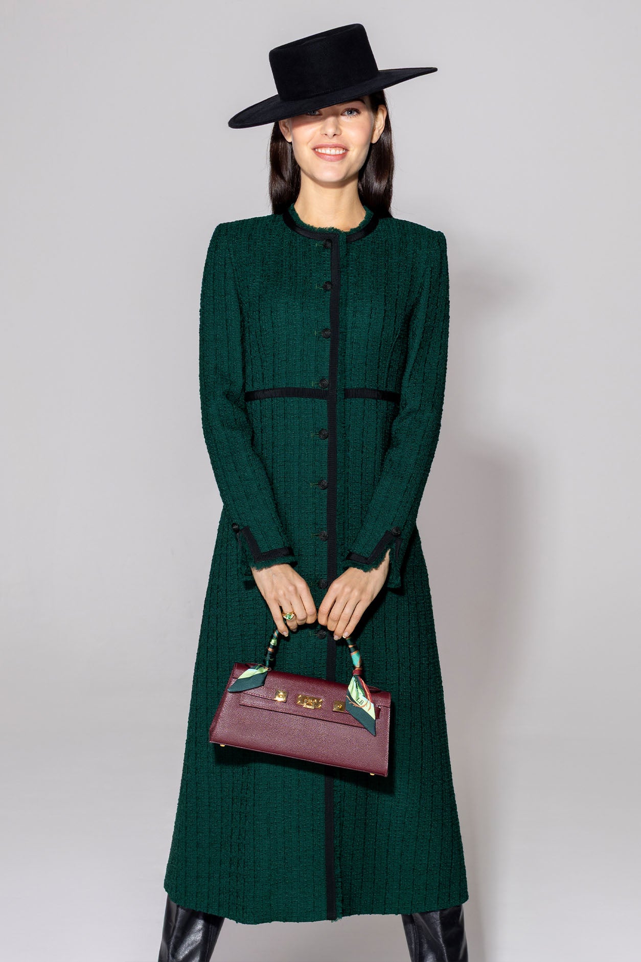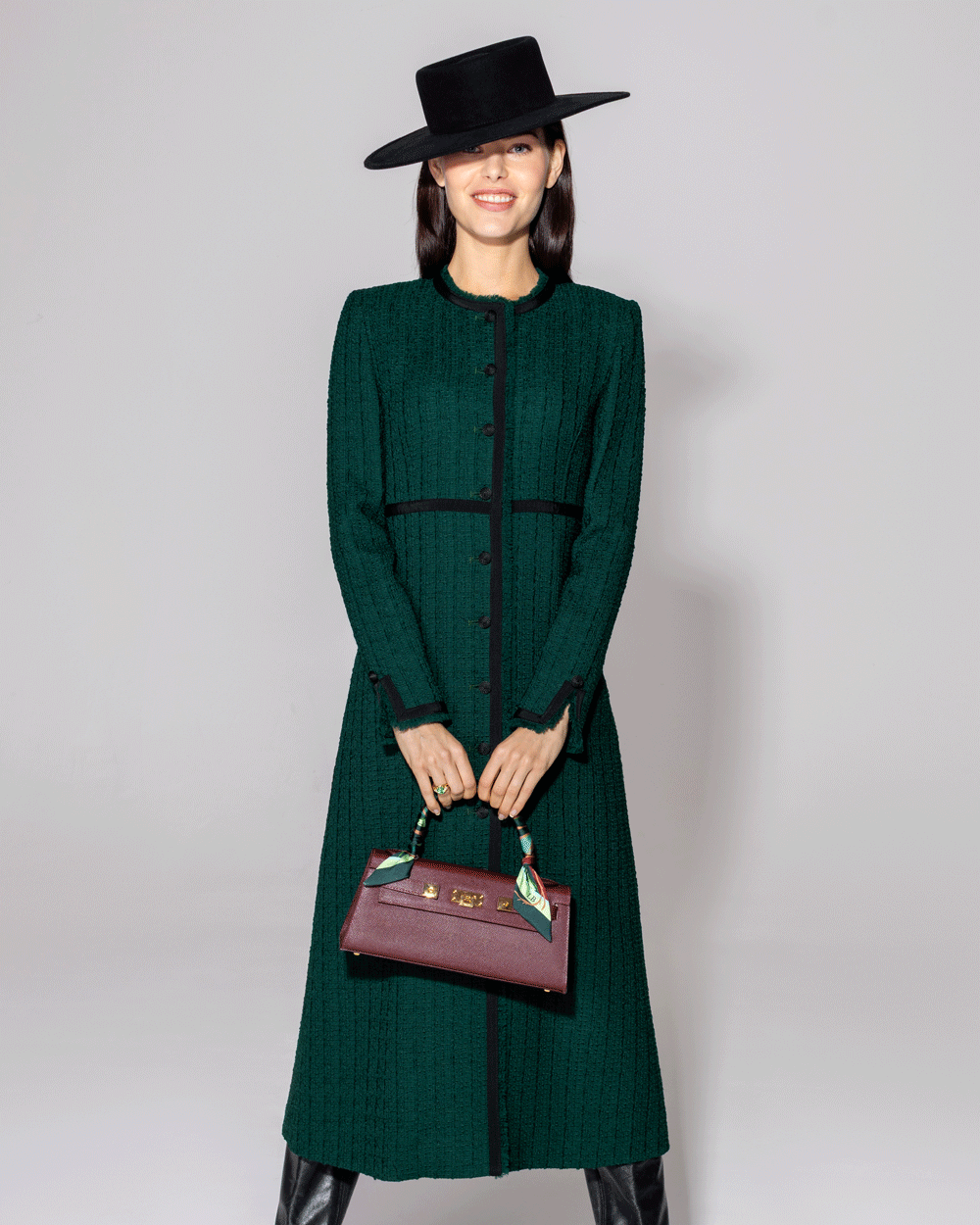 Sienna Coat in Bottle Green Tweed