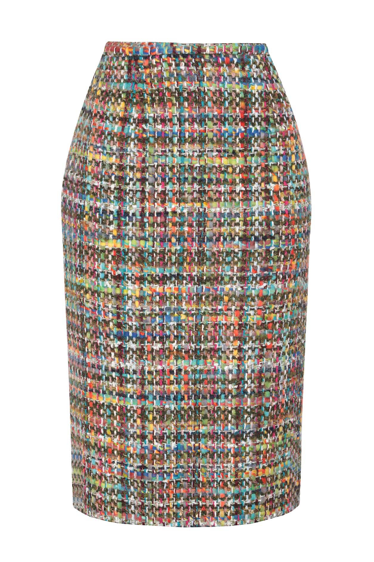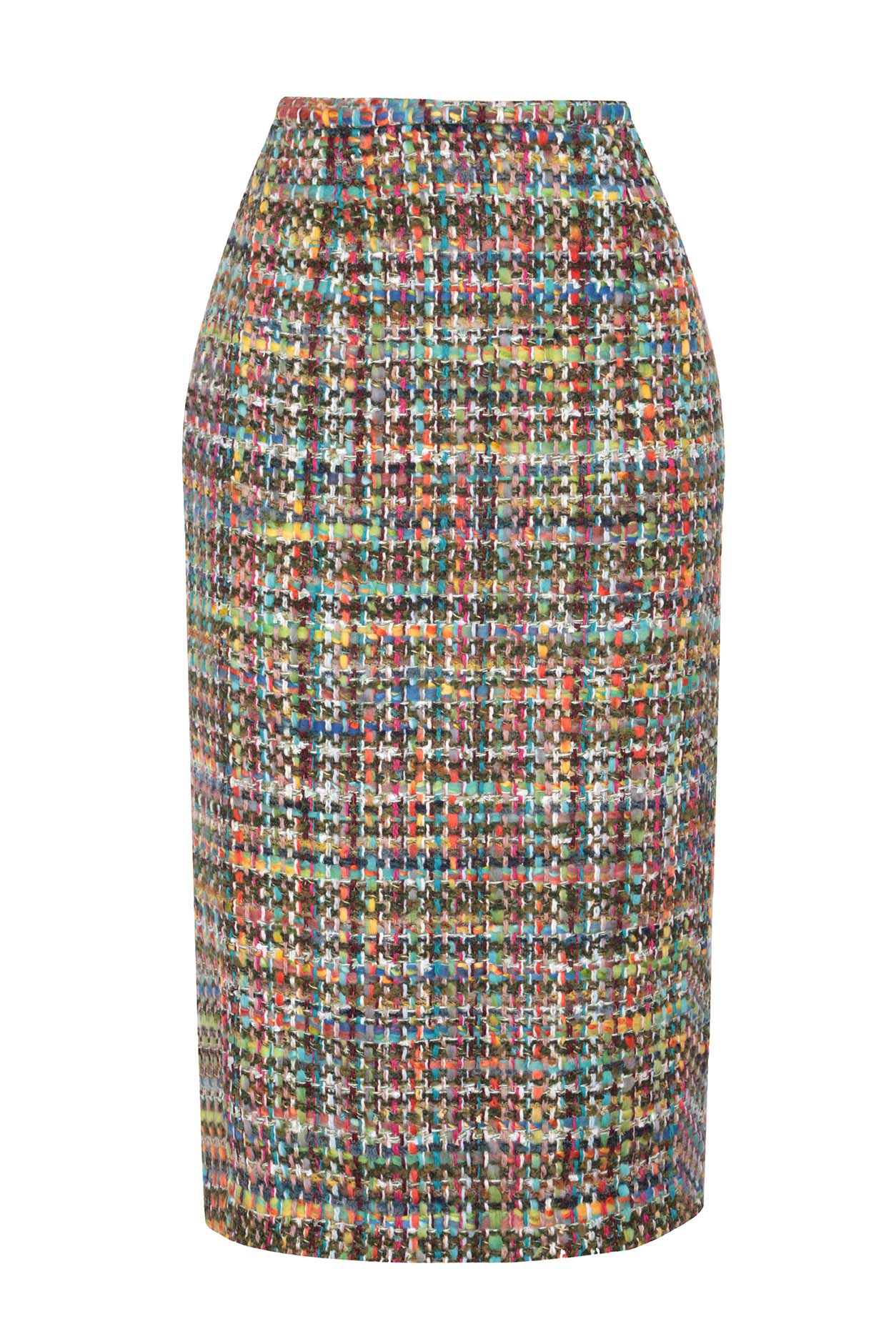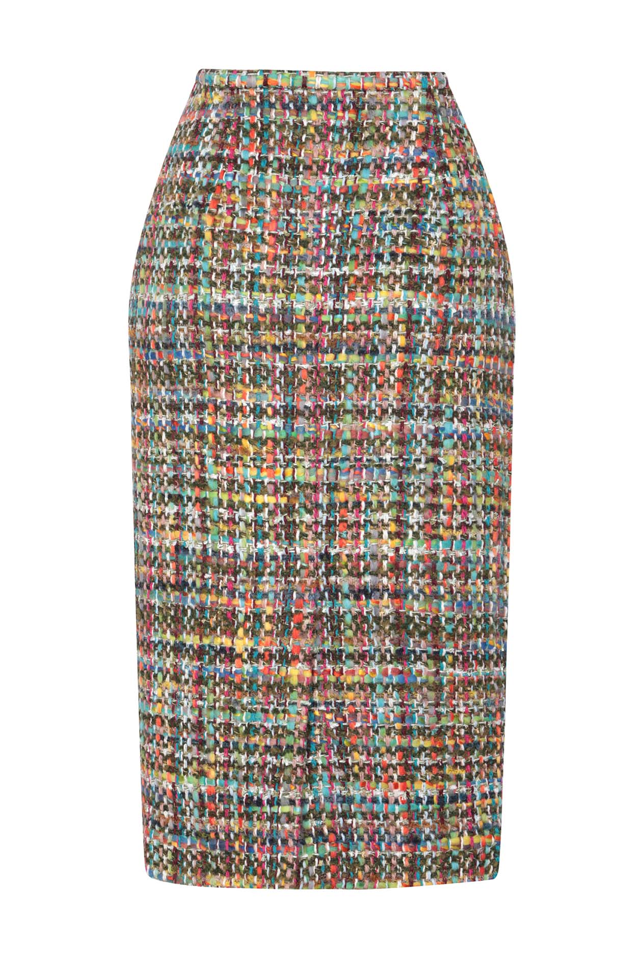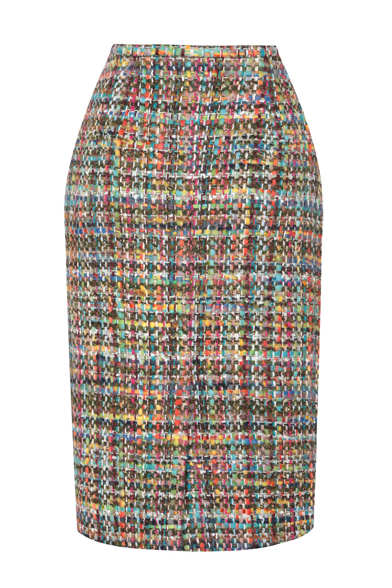 Longer Length Penelope Skirt in Green/Multi Tweed