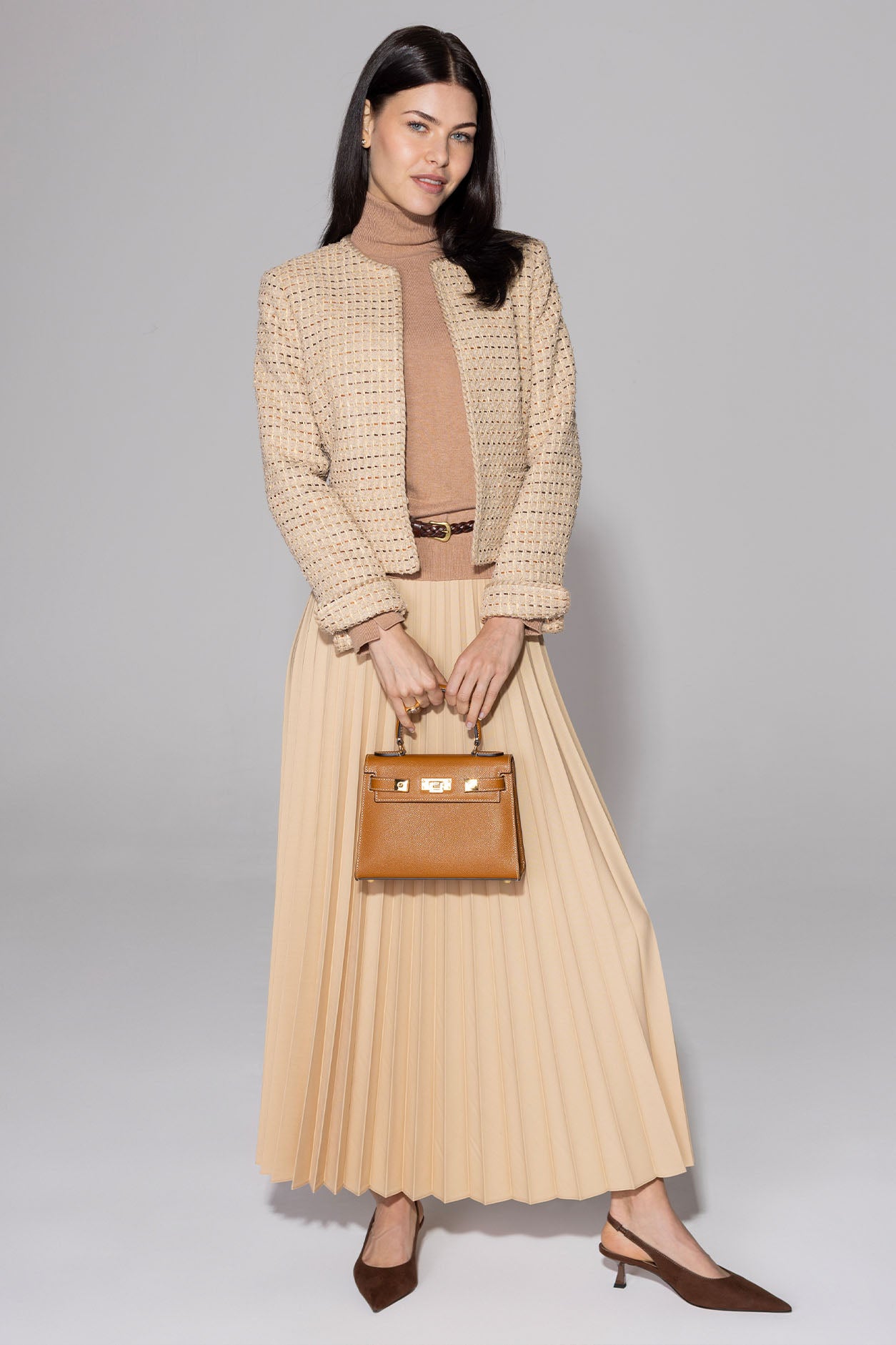 Longer Length Penelope Skirt in Camel Tweed