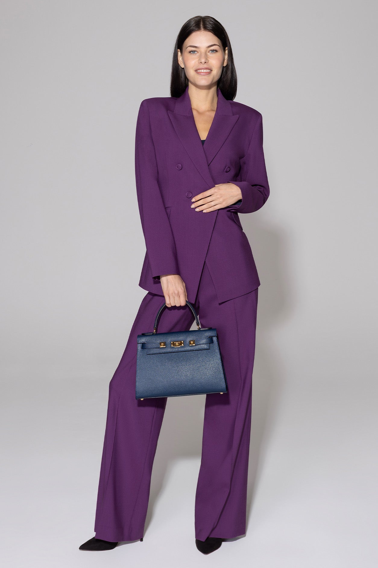 Paloma Trousers in Aubergine Wool Faille