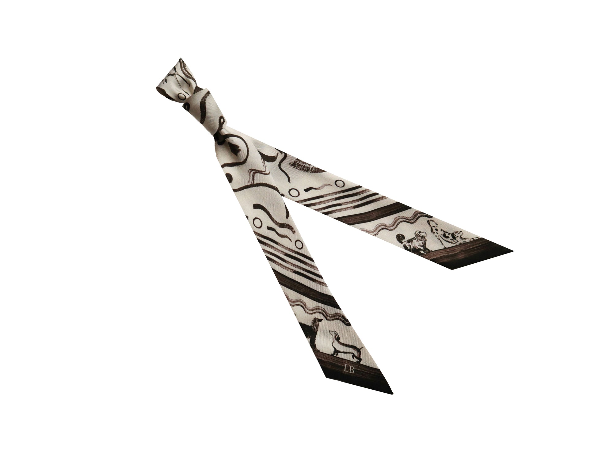 Lalage Beaumont was inspired by the 1970s and 1980s when she created exquisite silk ribbon scarves to tie around the handles of her handbags. Deciding to go one better than other options available, Lalage's Banderole scarves are unique because they are printed and cut on the bias. Much more challenging to make, but enabling the scarves to wrap around the handle beautifully, this results in a more seamless look. Lalage Beaumont is proud to say that her silk ribbon scarves are all designed in house and then printed and made in England from 100% silk twill: most are patterned and colourful, althouugh there are also simpler bi-colour logo print options and some seasonal, limited-editions runs. For Lalage, it's a wonderful way for women to personalise their bag and make it their own, and her customers love this distinctive LB finishing touch. The expert store staff will tie your silk ribbon scarf on for you, or you can consult the handy illustration on this page for advice on how to tie and wear it. These scarves are dry clean only.