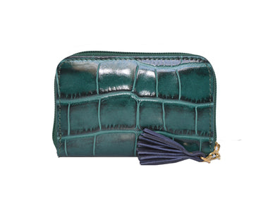 Small Zip Purse 'Croc Print' Leather - Dark green