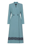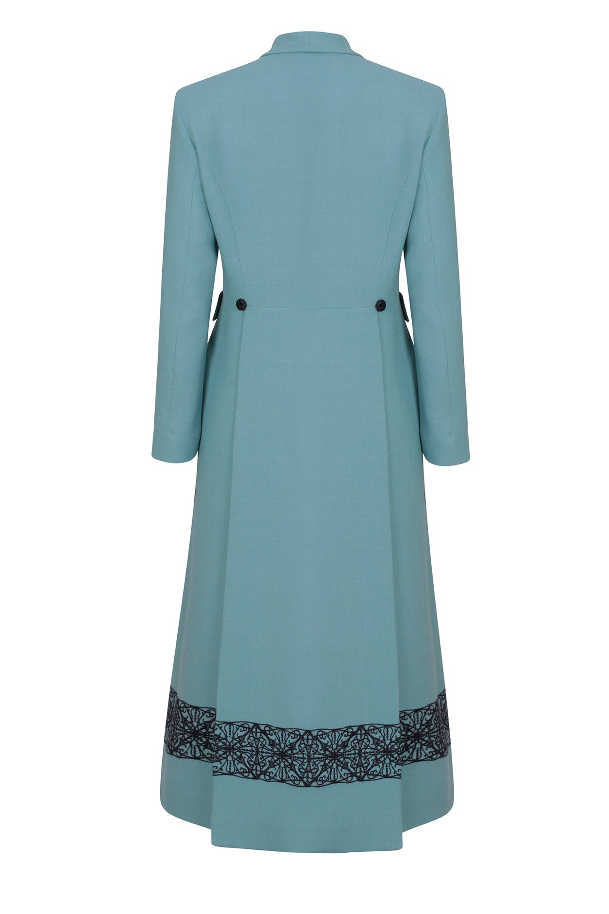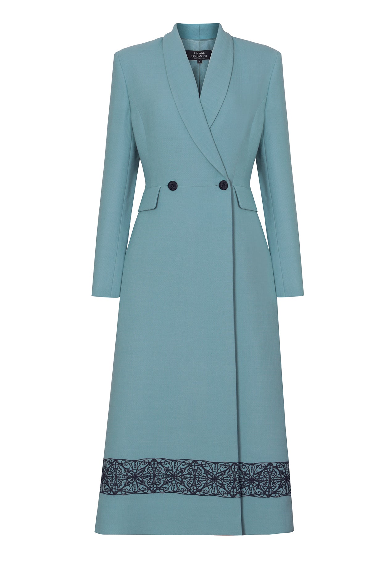 Some of the Lalage Beaumont dress coats were originally inspired by a Georgian style men's coat. Lalage's adaptation of this classic look reflects her extensive experience in the tailoring industry along with her love of historical costume and commitment to precise, perfectly flattering proportions. A matching Lalage Beaumont dress can be bought to go with a dress coat but need not always be worn as a set, which ensures your ensemble, even if bought for a wedding, can be worn year-round and year after year; the Lalage Beaumont team will be happy to advise which styles combine well together. Some of the dress-coats are double-breasted, some have edge-to-edge fastening and others, including the signature Vicky, have a frogging fastening (a type of ornamental braiding closure made out of cord, consisting of a button and a loop fastening); all are fully lined. Lalage’s commitment to the environment has ensured that her clothing and handbags are manufactured as sustainably as possible: every garment is designed and made in London, supporting British manufacturing and ensuring a minimal carbon footprint. All Lalage Beaumont dress coats are dry clean only.