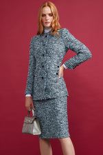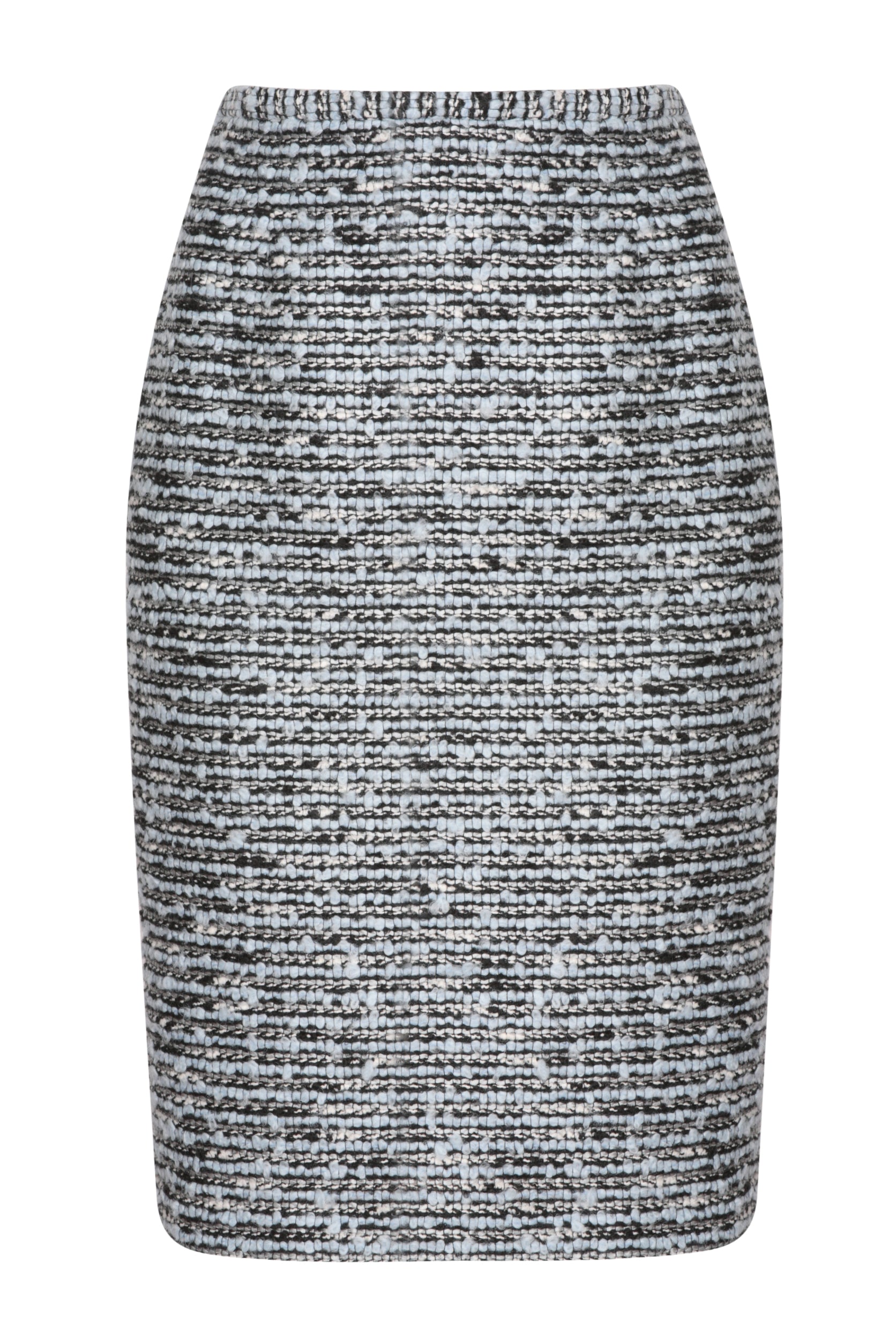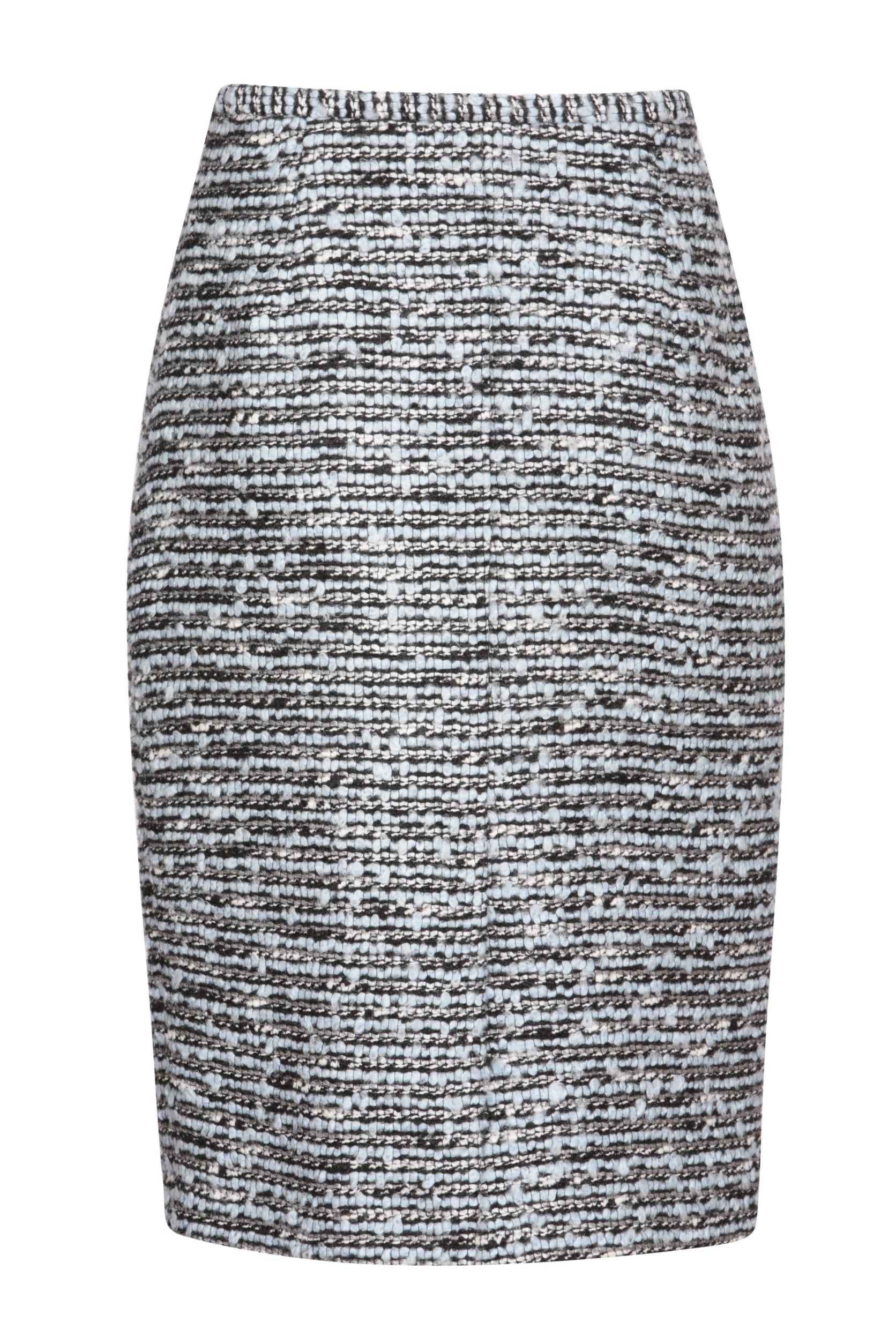 Pencil Tweed Skirt in Blue/Grey Tweed - Penny