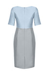 Sateen knee-length dress with short sleeves and waistband detail in Sky Blue/Grey.